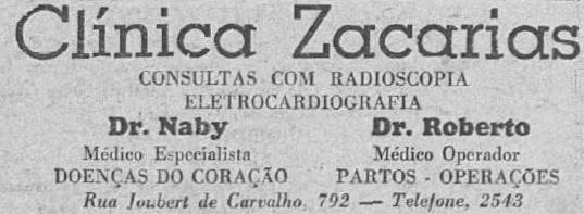 Em 01/04/1980, Naby Zacarias era o coordenador de reabilitação profissional, na agência de Maringá do Instituto Nacional de Previdência Social – INPS, e médico dos servidores do Instituto Brasileiro do Café – IBC, em Maringá.