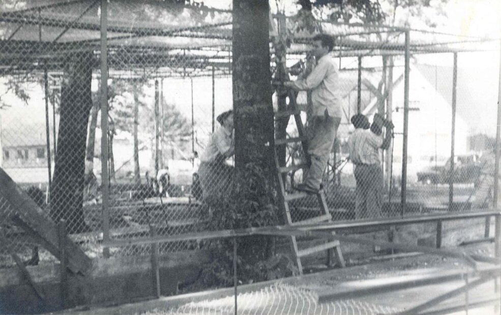 Nos anos 1950, o Bosque recebeu uma importante reforma. A fotografia de Oswaldo Leite registra o momento da construção do viveiro de animais.