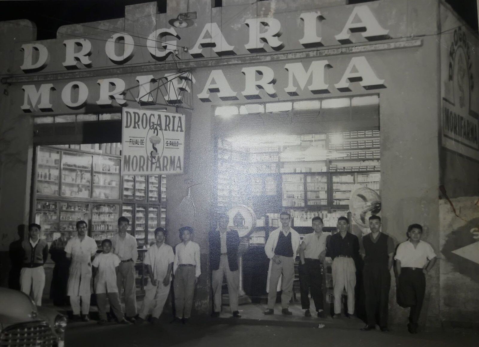 De propriedade de Mário Moribe, Moribe Yoshito, Francisco Takashi Moribe e Kiyoschi Onu, a farmácia manteve filiais nas cidades de Cruzeiro do Oeste, Nova Esperança, Atalaia e Paranavaí. A placa na fachada indica que a unidade de Maringá era uma filial de São Paulo.