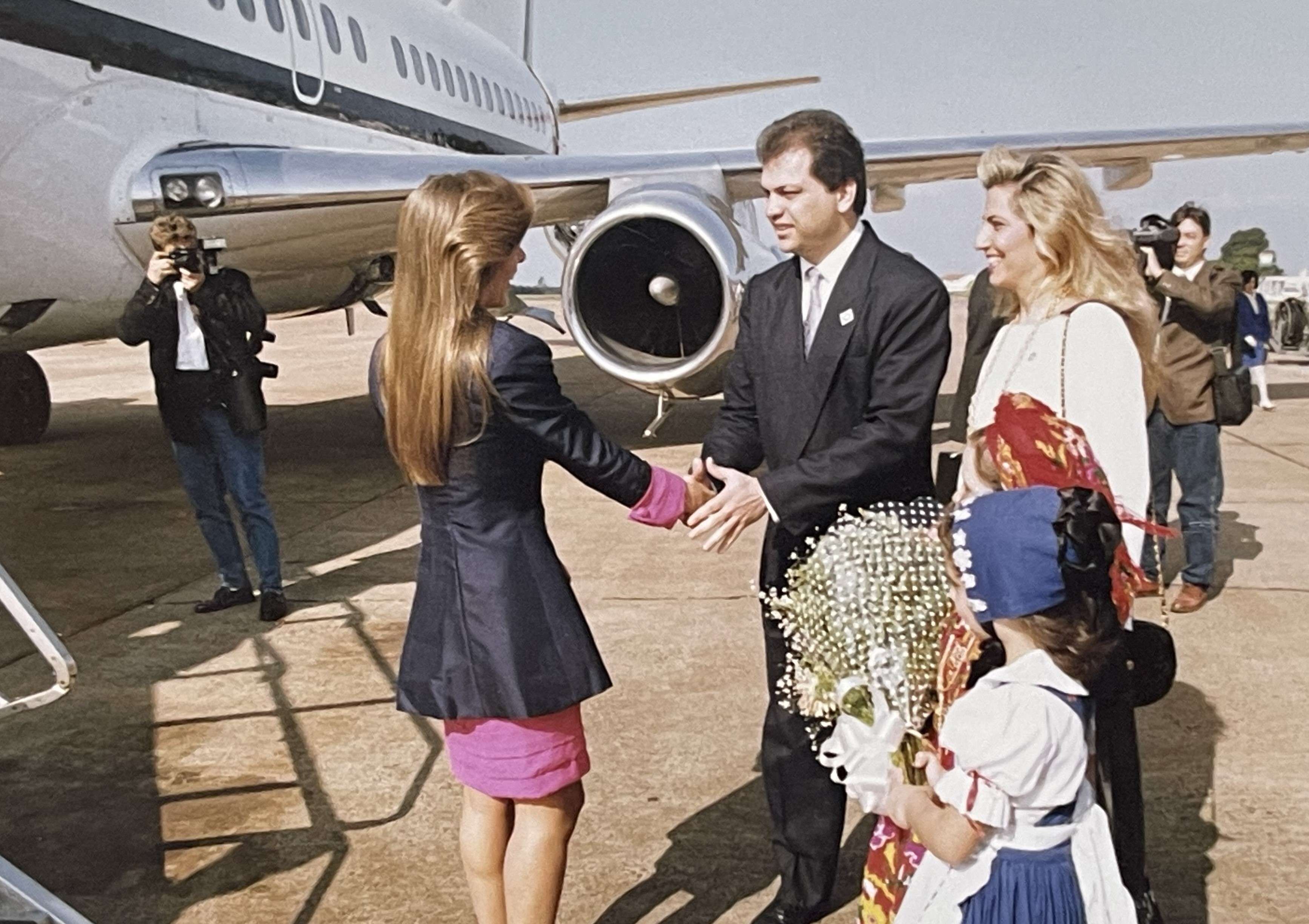 As imagens mostram a então primeira-dama da República, Rosane Collor, assim que desembarcou do avião oficial no Aeroporto Regional Dr. Gastão Vidigal, em Maringá, no dia 2 de agosto de 1991. Rosane veio acompanhar o marido, o presidente Fernando Collor de Mello, em agendas oficiais no Município.