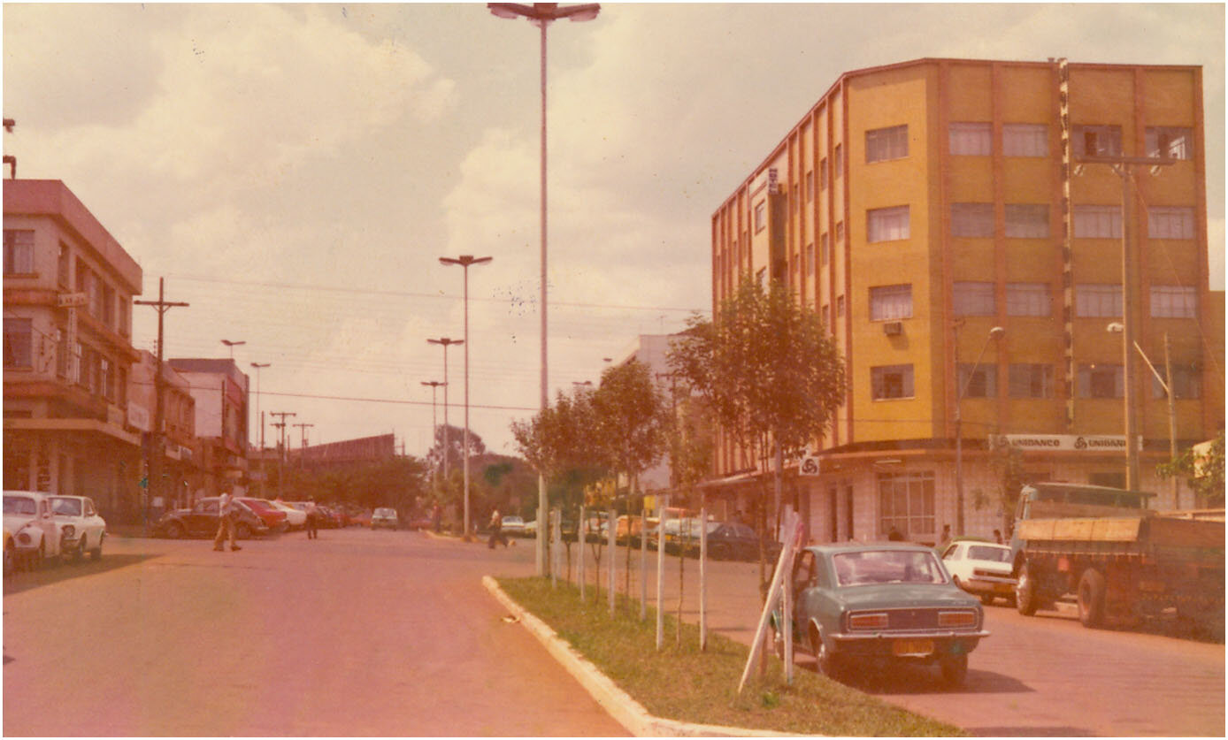Do acervo do Instituto Brasileiro de Geografia e Estatística (IBGE), o registro mostra a avenida Tiradentes, na região central de Toledo, em algum momento da década de 1970.