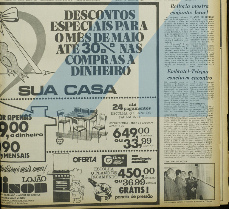 Do acervo do projeto Memória Paraná, onde estão digitalizadas as versões impressas da Gazeta do Povo, o registro mostra uma propaganda no segundo caderno do jornal dedicado as Lojas Madison. Trata-se da edição do dia 20 de abril de 1975.
